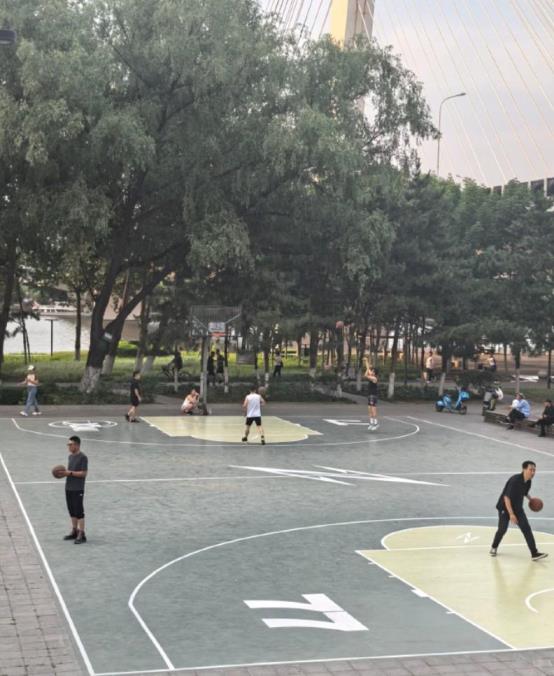 該籃球場的位置在沈陽市奧林匹克生態(tài)公園。從圖片來看,球場上印有?張鎮(zhèn)麟的球衣號碼“77”以及姓氏字母縮寫“Z”。