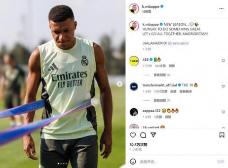 8月5日,姆巴佩在社交媒體上更新了動(dòng)態(tài),分享了他參加季前訓(xùn)練的照片。姆巴佩在社交媒體上發(fā)布了一張訓(xùn)練照片,配文寫道:“新賽季…期待創(chuàng)造輝煌,讓我們共同努力,皇馬人!HALA MADRID!”